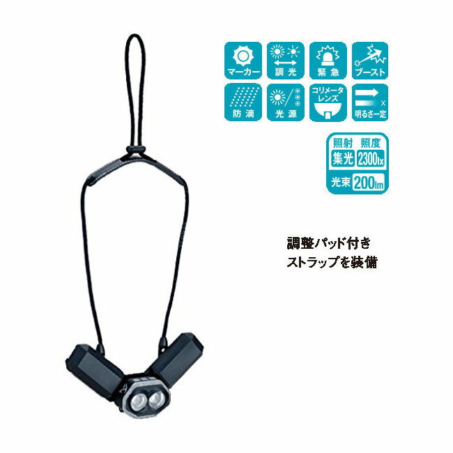 ズレない、ぶれない、安定のバッテリーレイアウト 視界が広がる超散光(600lx/200lm) 超集光ブースト約10000lx、約600lm、約500m先の対象物を照らしだせる 視界が広がる超散光(約600lx、約200lm) 身体にフィット!軽く感じる電池レイアウト 【仕様】 ●明るさ 集光:強 約3600lx/200lm 集光:弱 約1000lx/50lm 集光:微弱 約120lx/7lm 散光:強 約600lx/200lm 散光:弱 約100lx/35lm ダブル:約 4200lx/400lm ブースト機能:約 10000lx/600lm ●電池寿命 集光強点灯:連続約2.5時間 集光弱点灯:連続約12時間 微弱点灯:連続約72時間 ダブル:連続約1時間 散光強点灯:連続約2.5時間 散光弱点灯:連続約24時間 エマージェンシー機能:約48時間 マーカー機能:連続約2000時間 赤点灯:連続約48時間 【光源】色ハイパワーLED×2、赤色高輝度LED×2(共にチップ) 【大きさ】約87×173×50mm 【質量】約200g(電池含) 【付属品】調整パッド付きストラップ1本 集散光形 IPX4 ※メーカーによっては仕様・カラー等が予告無く変更になる場合がございます。