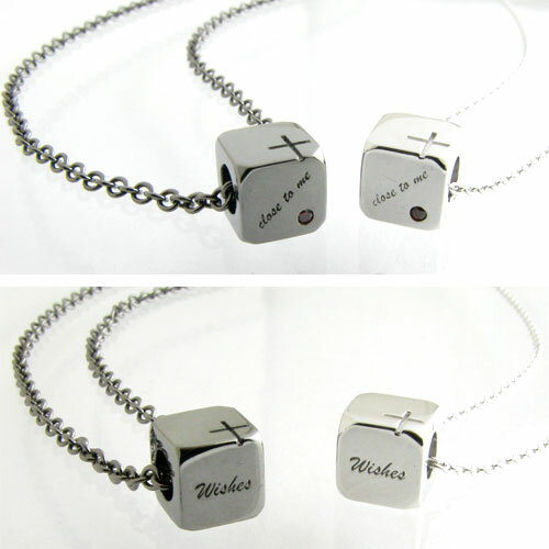 ペアネックレス close to me レッドダイヤモンド付き Black&Whiteダイス キューブ シルバーペアネックレスSN13-163 164