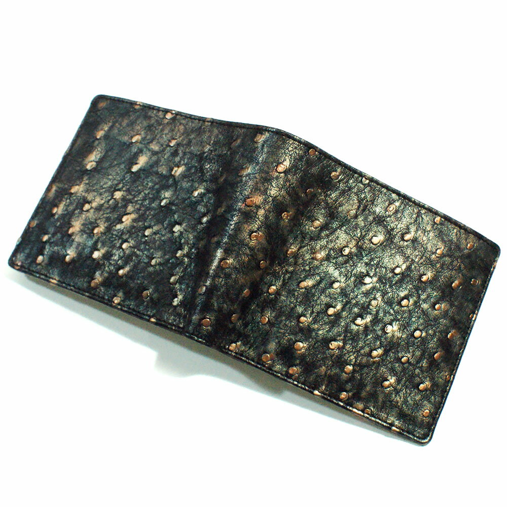 オーストリッチの無双仕様、オリジナルの折り財布 本体、内装にオーストリッチを使った二つ折り財布です。